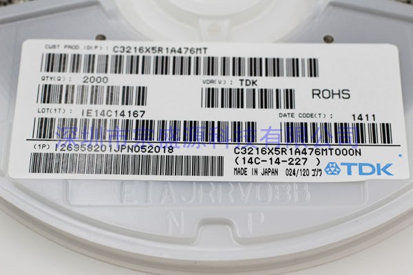 產品名稱:TDK陶瓷電容 3216 10V 47UF C3216X5R1A476MT