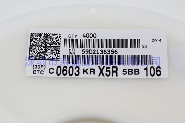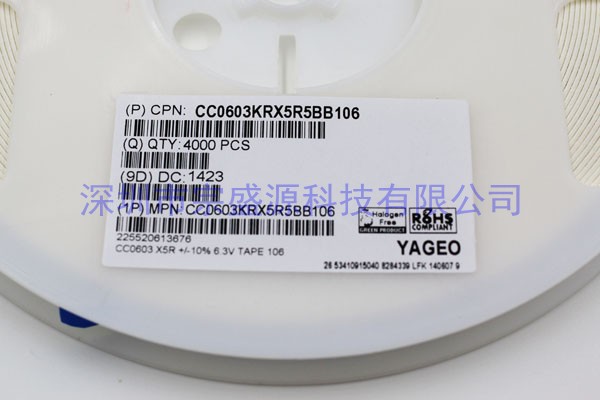產品名稱:YAGEO電容 0603 6.3V 10UF CC0603KRX5R5BB106