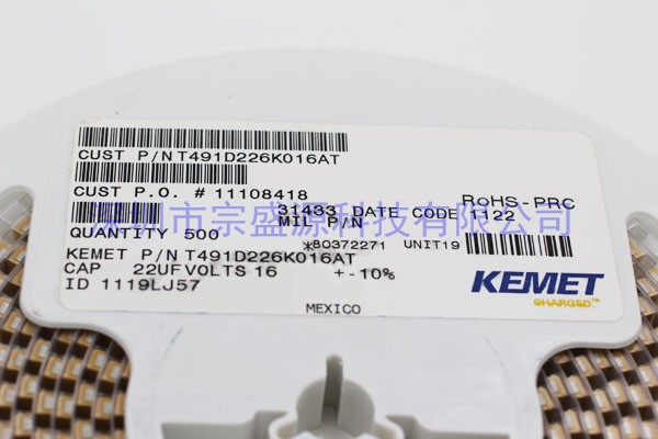 產(chǎn)品名稱:KEMET鉭電容 7343 16V 22UF T491D226K016AT