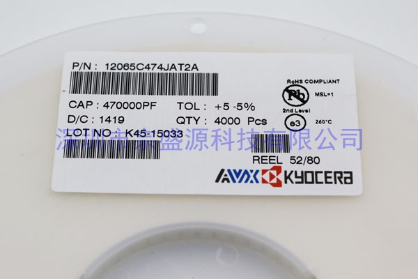 產品名稱:AVX陶瓷電容 1206 50V 0.47UF 12065C474JAT2A