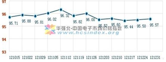 本期華強北電子市場綜合指數小幅走高,收于95.57點,上漲0.07點,漲幅0.07%。旗下四板塊僅