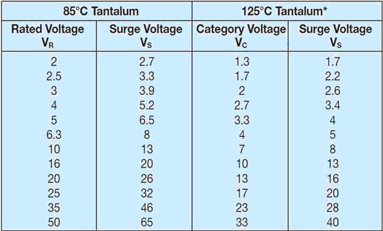這是在一個(gè)電容器上可以連續(xù)施加的最高電壓,在+85°C 時(shí)它等于額定電壓,在125 °C時(shí)它是2/3VR,超過(guò)這個(gè)溫度會(huì)有一個(gè)線性的降額。