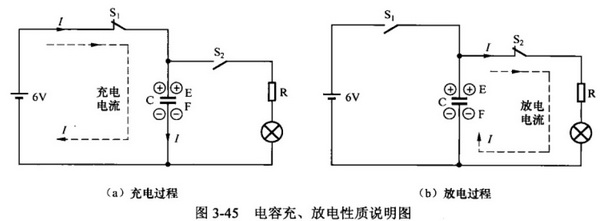 電容器非常重要的性質(zhì),下面以圖3-45所示的電路來說明該性質(zhì)。