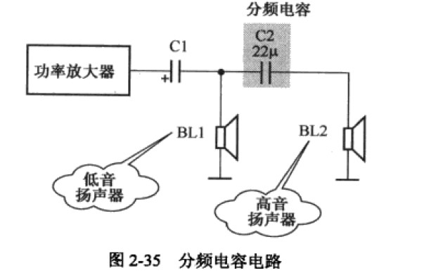 2.上述分頻陶瓷電容電路中,高音頻信號(hào)也能加到低音揚(yáng)聲器上,但是低音頻揚(yáng)聲器的高頻特性不好,所以重放高音主要由高音揚(yáng)聲器BL2完成。如果不了解低音揚(yáng)聲器還原高音的效果不好這一特性,就無法理解低音揚(yáng)聲器為何不能重放高音。