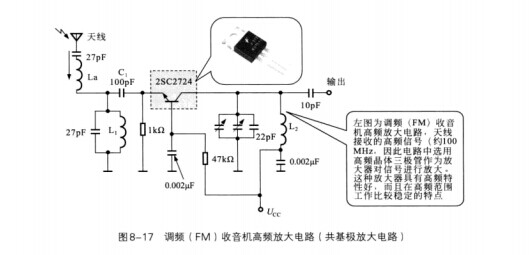 調(diào)頻(FM)收音機(jī)高頻放大電路(共基極放大電路)見圖8-17。