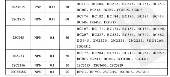 下面選擇調(diào)頻(FM)收音機(jī)高頻放大電路(共基極放大電路)、單管共發(fā)射極放大器和晶體管音頻放大器為例介紹不同類型三極管的代換。